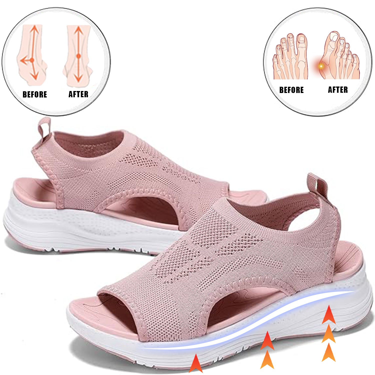 Our sandals are designed to help improve bunion conditions. With a supportive structure that aligns your toes correctly, these sandals provide the comfort and stability needed to alleviate bunion pain and prevent further misalignment. Perfect for daily wear, they ensure your feet stay comfortable while aiding in the correction of toe deformities.