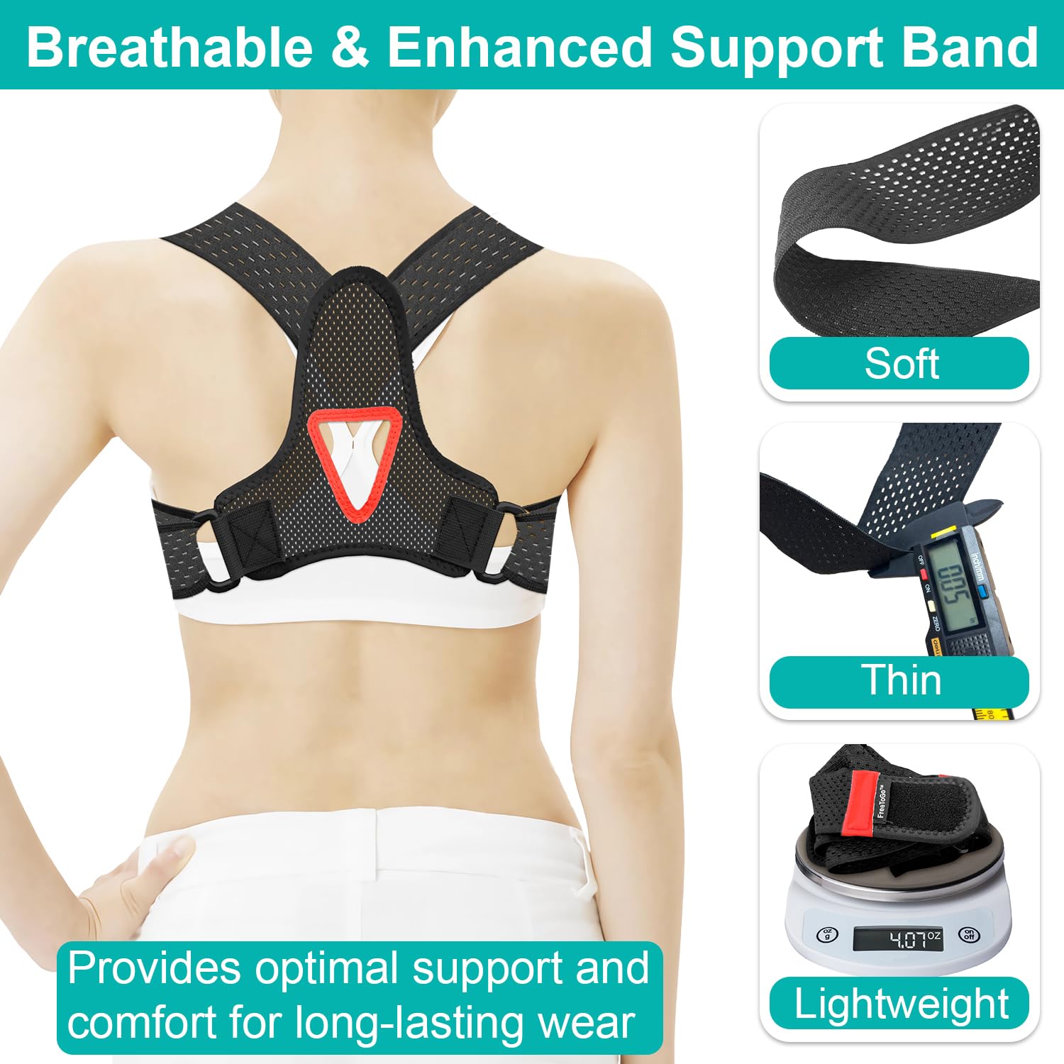 Breathable Posture Corrector for Women Men - Lightweight and Soft Upper Back Brace for Pain Relief from Shoulder, Neck, Clavicle/Upper Spine Straightener Support for Hunchback Bad Posture Under Clothes