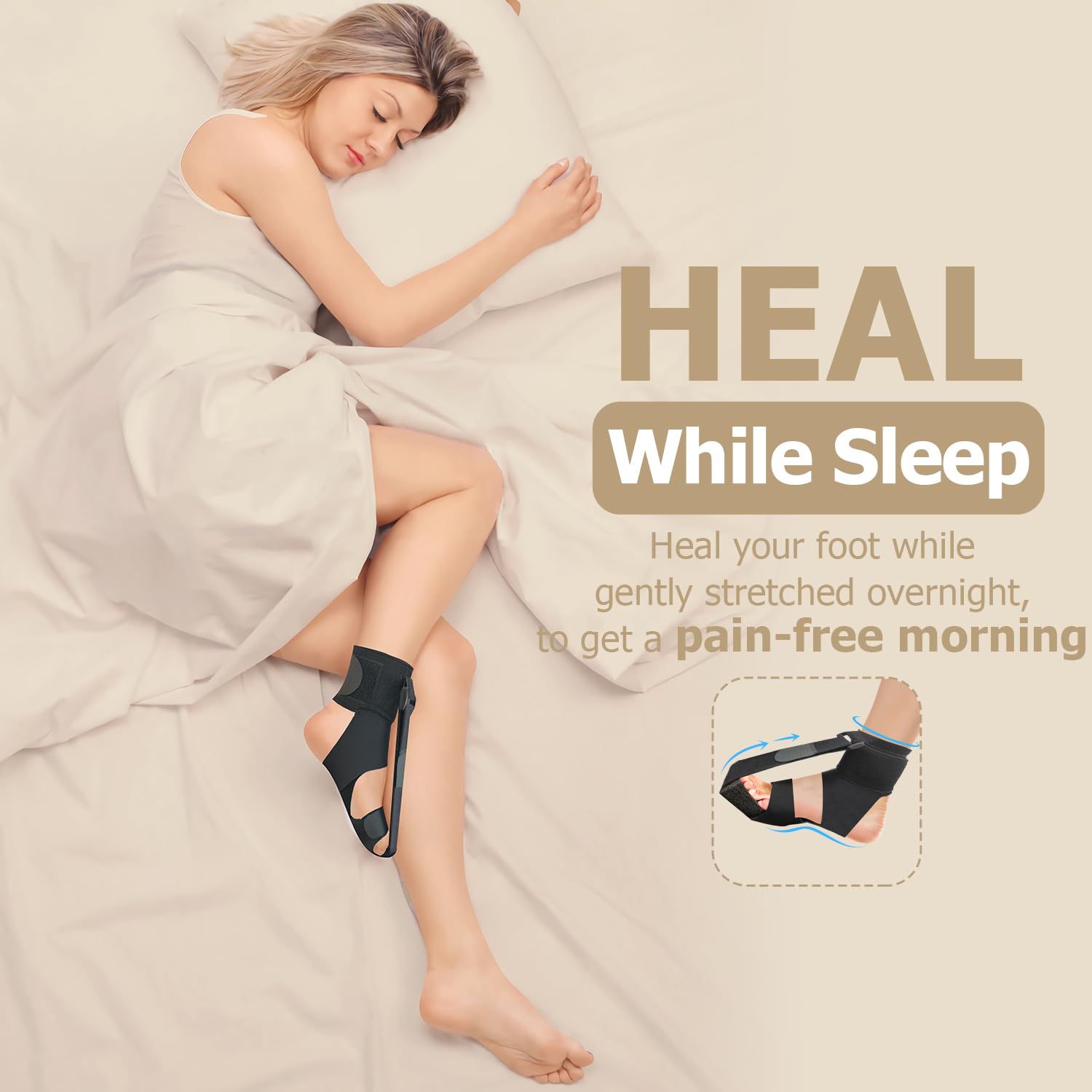 - Overnight Healing for Pain-Free Mornings: Experience effective pain relief with our adjustable strap, which gently stretches your plantar fascia and Achilles tendon while you sleep. This therapeutic stretch helps your foot heal overnight, reducing morning pain and stiffness